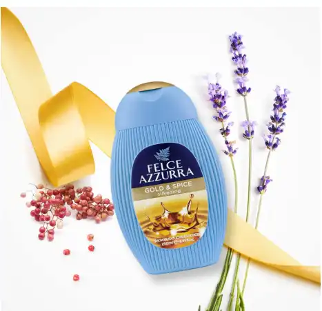 Vivez une expérience de douche luxueuse avec Azzurra Gold & Spice. Ses notes chaudes de cannelle, muscade et bois précieux créent une atmosphère riche et enveloppante.