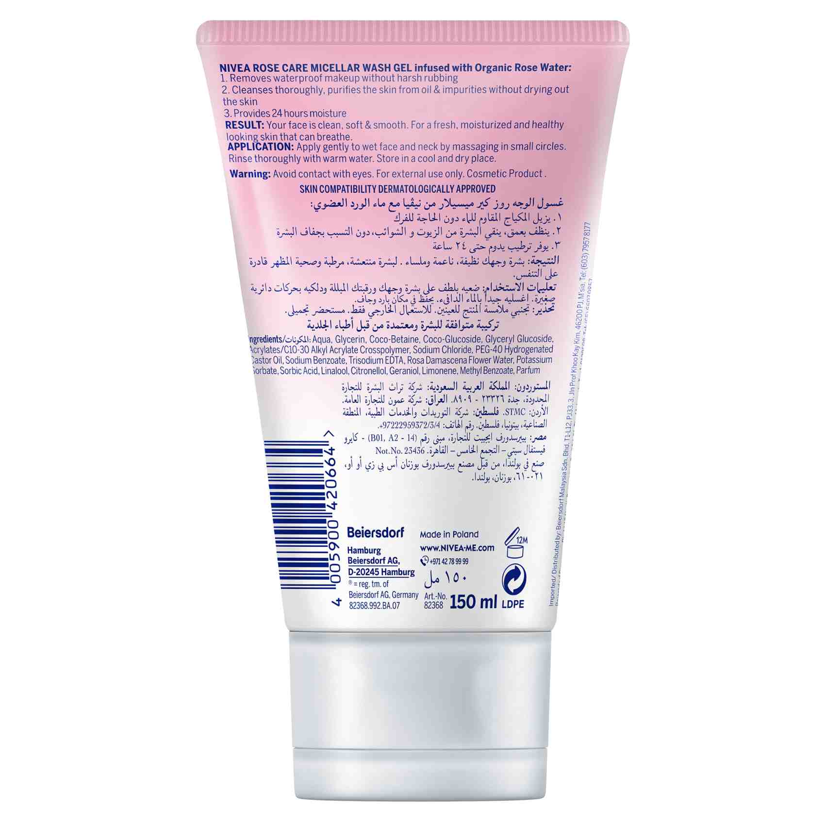 Nettoyez votre visage en douceur avec ce gel micellaire Nivea Rose Care enrichi en eau de rose de Damas biologique. Sa formule non desséchante à base de tensioactifs végétaux élimine les impuretés et le maquillage tout en préservant l'hydratation naturelle de la peau.