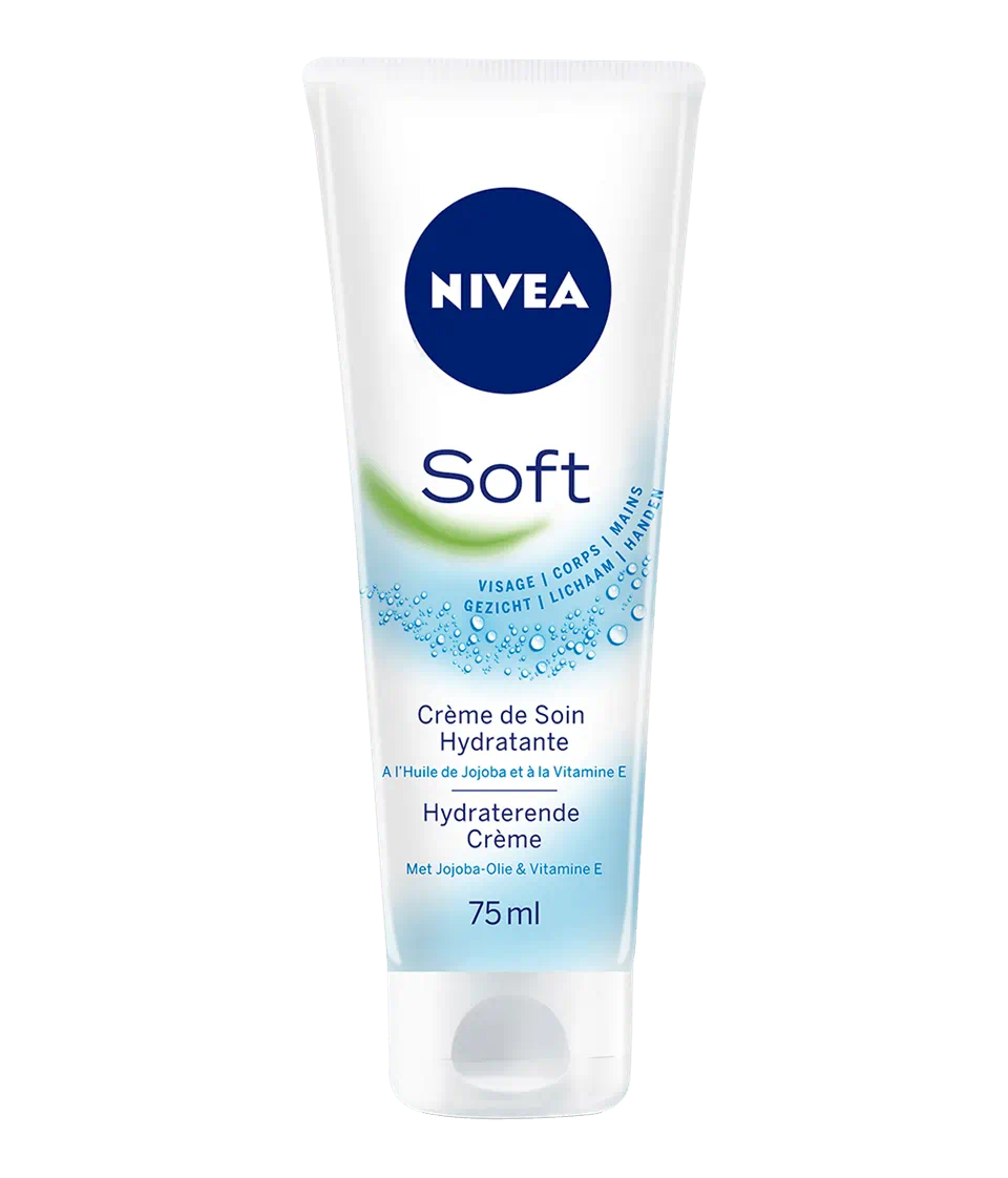 La Nivea Soft est la crème multi-usage culte, enrichie en huile de jojoba 100% naturelle et en vitamine E. Sa texture légère et fraîche pénètre instantanément pour hydrater le visage, le corps et les mains jusqu'à 48h. Formulée à 95% d'ingrédients d'origine naturelle, elle convient à tous les types de peau et laisse une sensation de douceur satinée dès la première application.